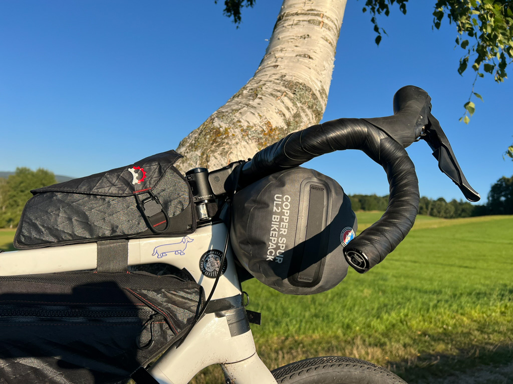 Co se prostoru týče, krom stanu by se vešlo do brašny i další oblečení nebo spacák či karimatka. Jenže, co když zaprší a budeš muset ráno balit mokrý stan? Chceš si k němu sbalit spacák nebo oblečení? Nechceš. Takže na to nemůžeš spoléhat jako na úložný prostor, pokud tedy nejedeš někam, kde fakt neprší. Jestli jedeš na silniční nebo i gravel bikepacking a máš možnost si vzít velkou zadní a rámovou brašnu, tak není problém mít jako přední brašnu pouze stan.